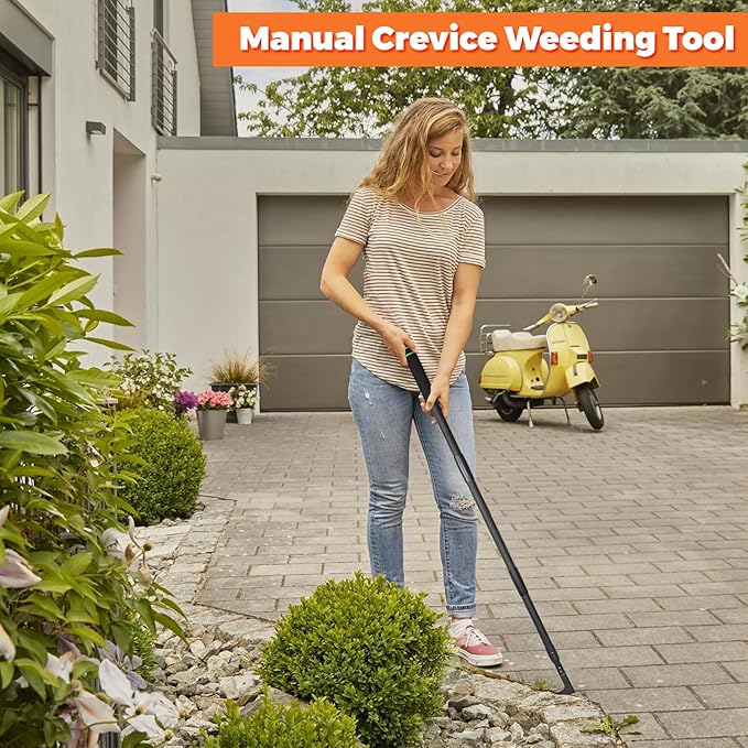 - Versatile Crack Weeder: The crack weeder features an adjustable length extending up to 43.7 inches, ensuring effortless access to hard-to-reach areas without bending or kneeling. Three length settings allow simple adjustment by adding or removing tubes.