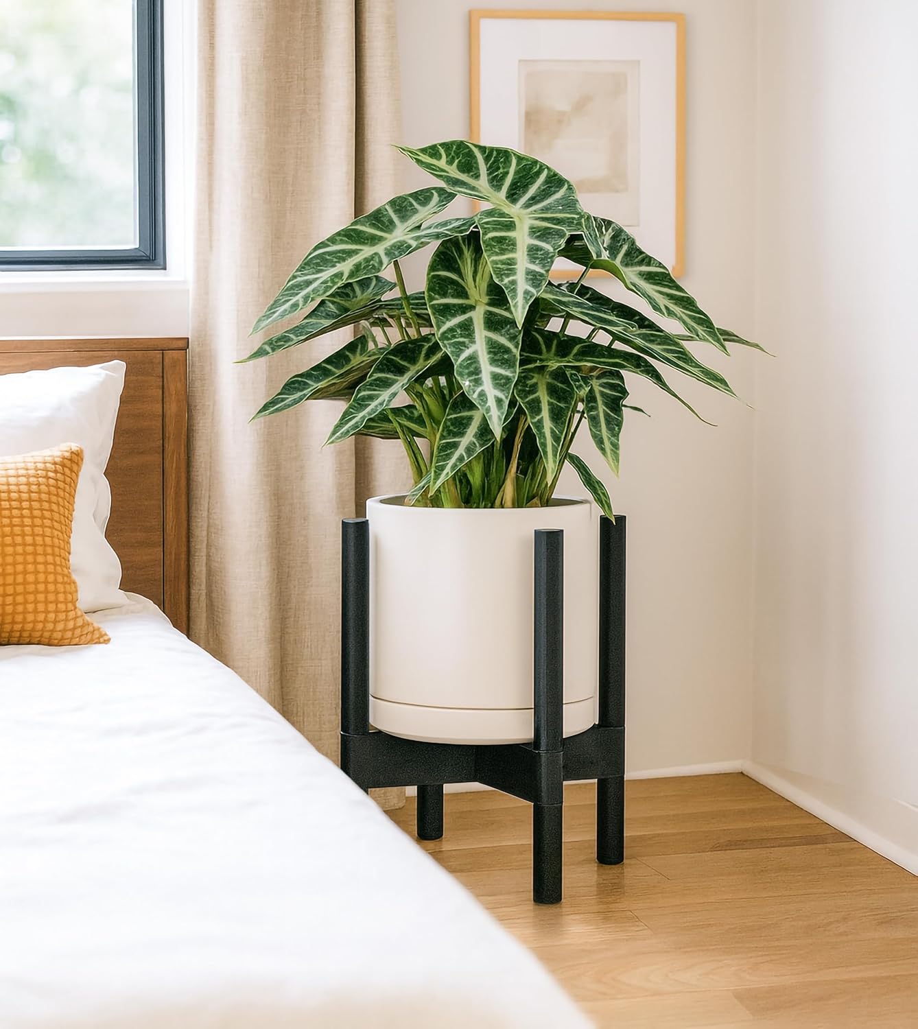 - A Complete Set: Mid-century ceramic planter, combined with a ebony wood stand that match perfectly together and looks great in anywhere.
