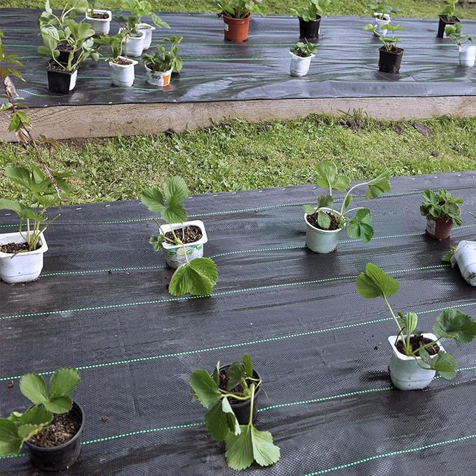 - Easy to Use --- Our landscaping fabric is effortless to cut and install. You can DIY the cloth size and shape to meet your different needs. The garden weed cloth also features green stripes for easy plant alignment.