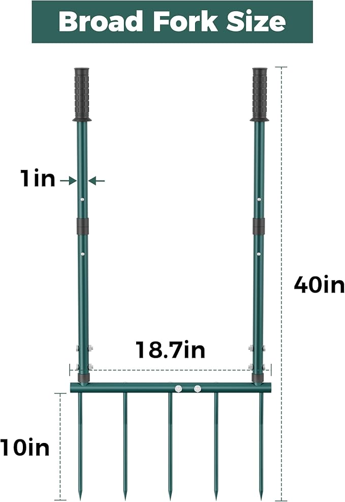 - Efficient Soil Preparation: This broadfork garden tool (40"x18.7") is perfect for breaking up hard or rocky soil, loosening dirt, uprooting weeds, and turning compost. Use it as a spading fork for planting, a digging fork for root vegetables