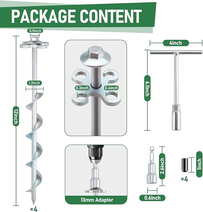 - Easy Installation: Includes a T-handle hex wrench and drill adapter socket for quick manual or power tool installation. The screw-in design penetrates hard, sandy, or frozen soil with ease, saving time and effort during outdoor setup or removal