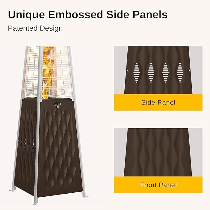 - Unique Pyramid Design – Elegant embossed stainless steel surfaces and glowing flame create a stylish centerpiece for any outdoor space. Combines functionality with sophisticated design.