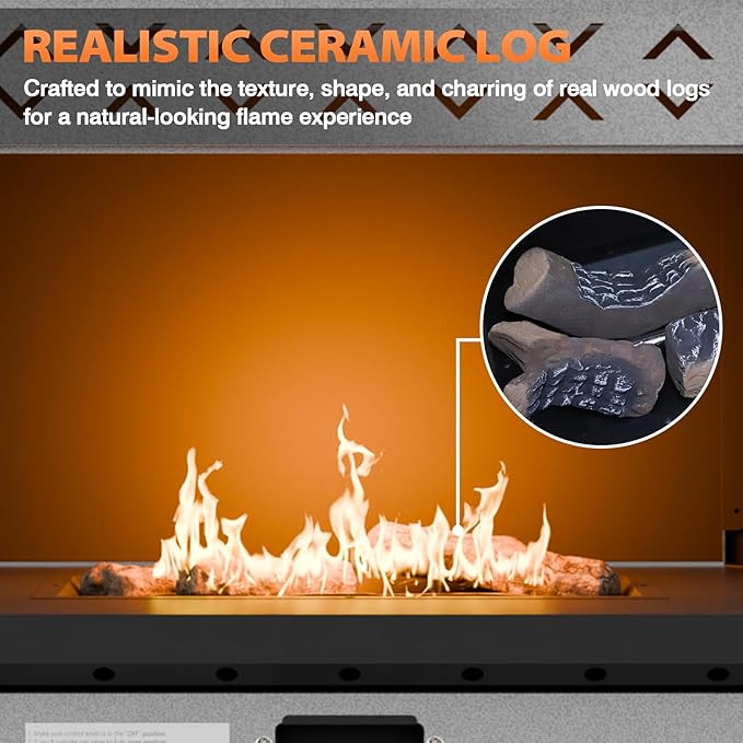 - REALISTIC CERAMIC LOG & SMOKELESS FLAME: Enjoy the warm glow of a real-looking fire without the hassle! This propane fire pit features a wood-style ceramic log that creates a cozy, flickering flame—no smoke, no ash, no soot. Perfect for clean-burning, mess-free outdoor heating and ambiance