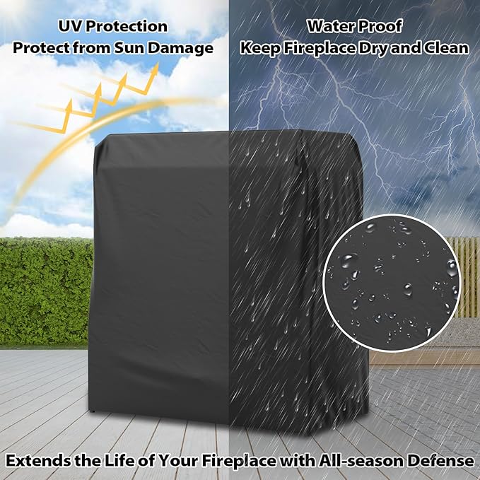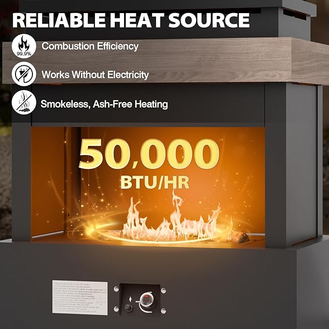 - SLEEK TANK STORAGE DESIGN: This propane outdoor fireplace features a hidden side compartment for the tank, keeping your space tidy. The spacious hearth ensures even heat for gatherings and relaxation.