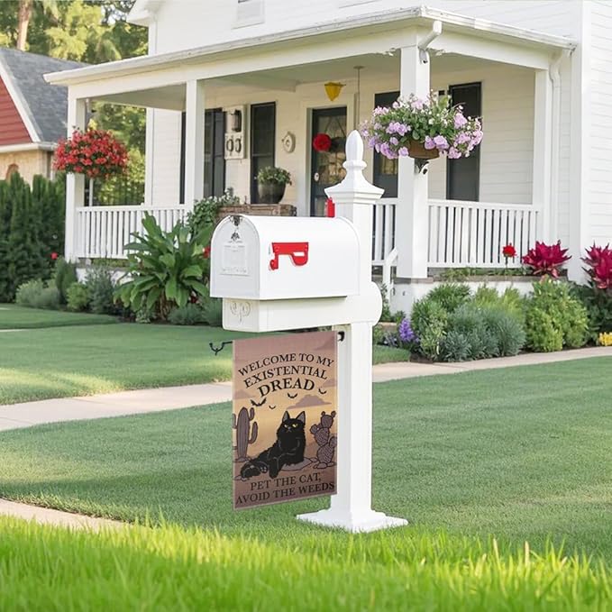 Welcome to My Existential Dread Pet The Cat Avoid The Weeds Garden Flag, Funny Bats Halloween Yard Sign for Outside, Cute Black Cat Fall Halloween Yard Decor, Housewarming Gifts for Pet Lover