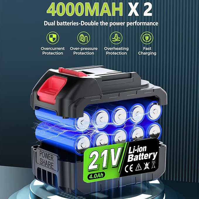 - 【Dual Batteries & Fast Charging】Handheld Leaf Blower is equipped with two 4000 mAh large-capacity batteries that provide up to 30 minutes of continuous operation. Built-in temperature protection with red/green charging indicator. To prolong battery life, keep the battery fully charged when not in use.