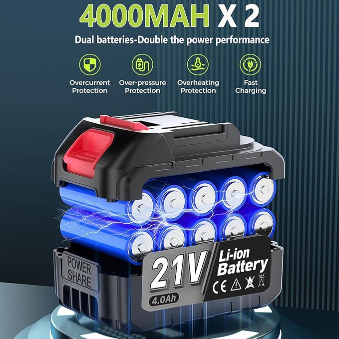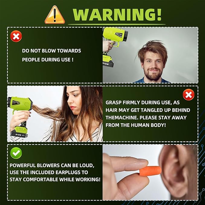 - 【Dual Batteries & Fast Charging】Handheld Leaf Blower is equipped with two 4000 mAh large-capacity batteries that provide up to 30 minutes of continuous operation. Built-in temperature protection with red/green charging indicator. To prolong battery life, keep the battery fully charged when not in use.