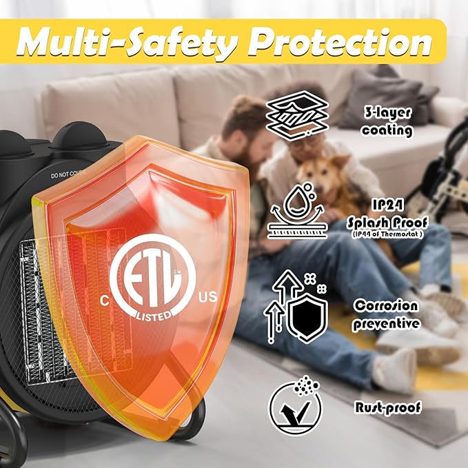 Outdoor Heaters for Patio, 1500W Portable Garage Heater with Overheat Protection & 3S Fast Heating, Non-Slip Cushion, Electric Space Heater for Patio, Garage, Greenhouse, Bedroom, Yellow