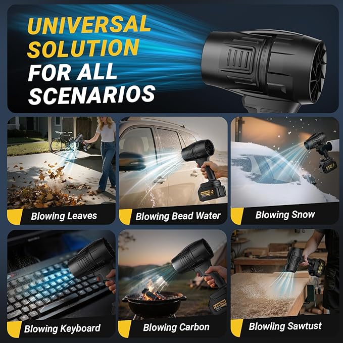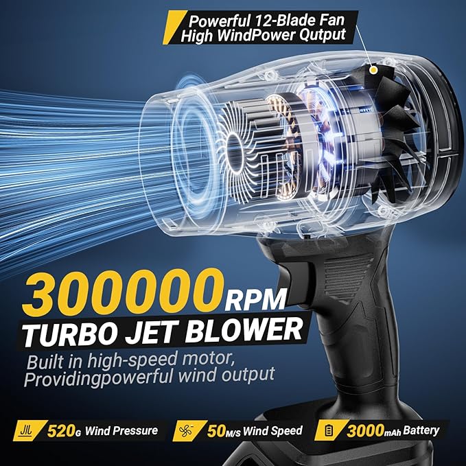 - 【High Power Performance】The turbo jet blower has a maximum speed of 300000 RPM, a wind speed of up to 50 M/S, a blowing power of 520 G,The hand held leaf blower is an excellent tool for cleaning up fallen leaves in the yard, dust in the workshop, or road debris.