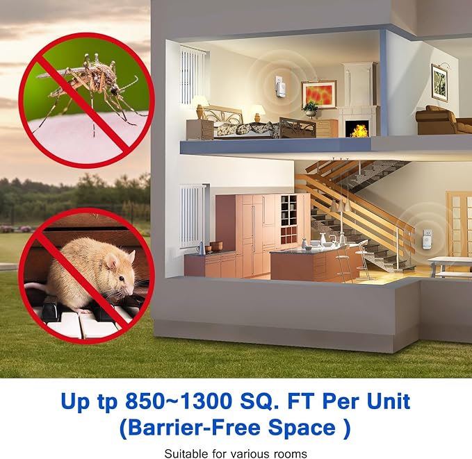 - Wide Coverage for Complete Protection: Each device covers an area of 80-120 square meters, perfect for use in homes, offices, and warehouses. For optimal results, place one ultrasonic pest repeller in each room, especially in areas with serious infestations such as those requiring roach killer indoor infestation or ant traps indoor solutions