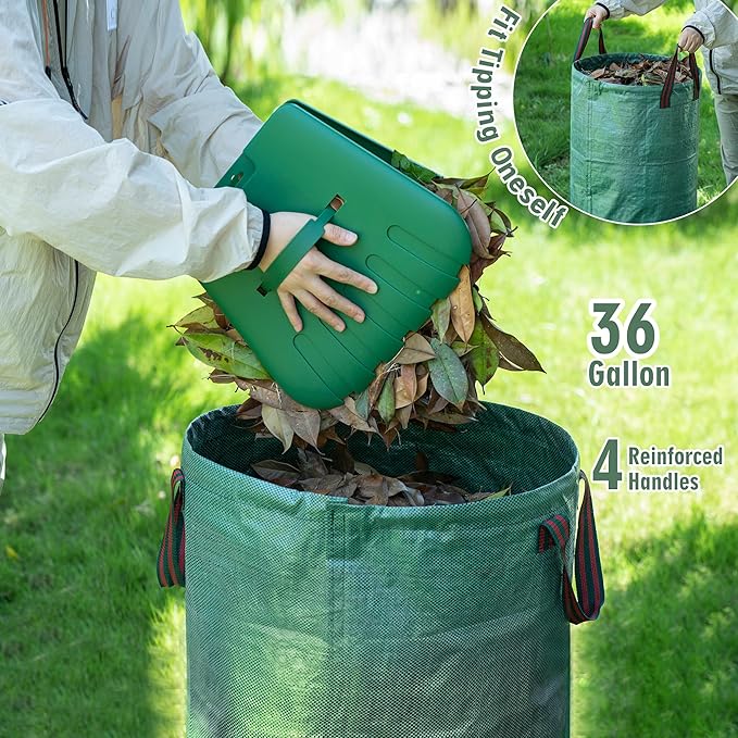 - 【Smart Cleanup Kit】Zero Mess Transport System Includes 32-Gallon drawstring bag (with carry handles) + non-slip leaf scoops! Claws securely grip slippery debris during bagging; heavy-duty bag allows direct dragging to compost piles.