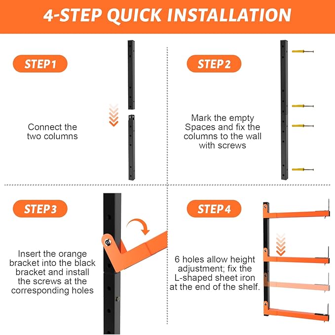 - 5-Step Quick Installation - This wood storage rack comes with clear instructions, making assembly a breeze. With its intuitive design and easy setup, it fully utilizes unused garage wall space, freeing up valuable floor space