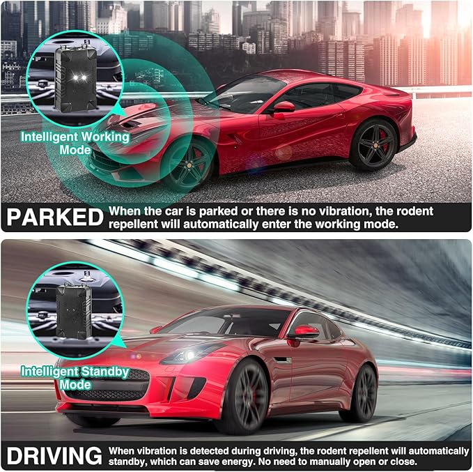 - It automatically activates 5 minutes after your vehicle is parked, protecting your car from mice, squirrels, and other rodents.It’s versatile enough for use in garages, attics, basements, and other areas, ensuring a rodent-free environment
