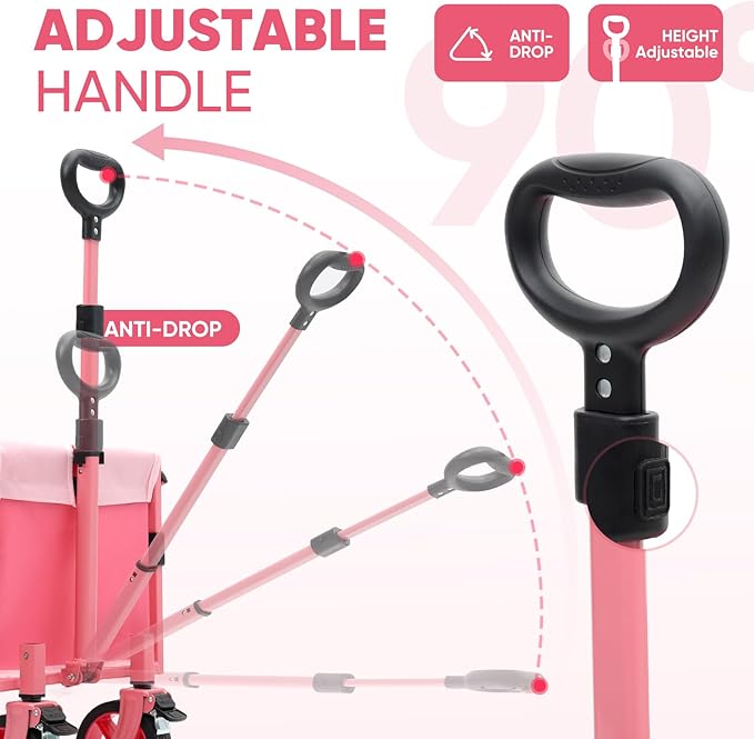 Wagon with Brakes, Foldable Cart with 220LBS Capacity, Utility Lightweight Wagon, Collapsible Grocery Shopping Cart for Camping Sports & Holiday.Pink