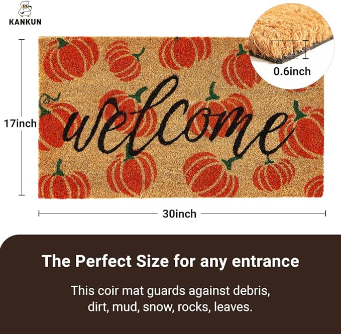 - Coco Coir Doormat : KANKUN welcome door mats are made of 100% coconut coir, which is one of the strongest natural fibers in the world. Natural coconut coir durable bristles are very effective in scraping dirt, mud and debris right at the doorstep.
