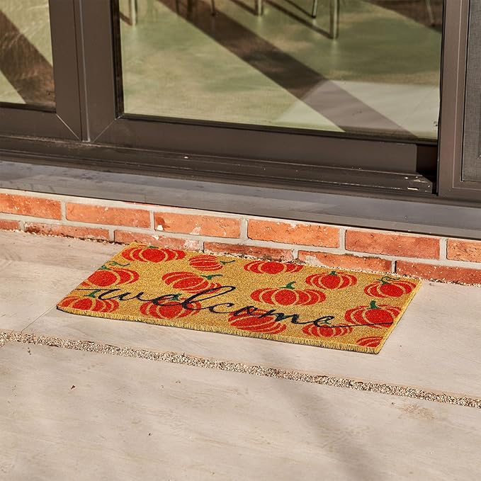 KANKUN Halloween Coco Coir Door Mat with Heavy Duty Backing, Welcome Doormat (17" x 30"), Doormat Entrance (Welcome1 - Halloween)