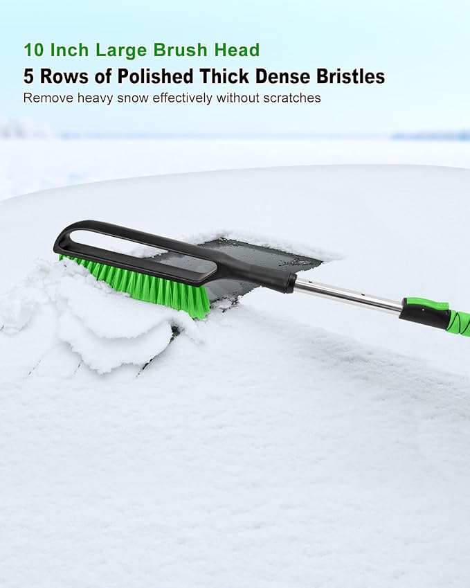- Paint-Safe Soft Bristles -- Gentle yet durable polished bristles remove snow effectively without scratching your car’s finish.