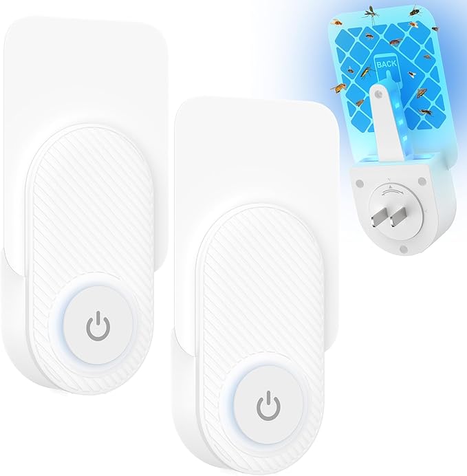 2PCS Fruit Fly Traps for Indoors- Highly Effective UV Blueish-Purple Light | Plug-in Fly Trap for Flies, Fruit Flies, Moths, Gnats, and Other Flying Insects, with 10 Sticky Pads(FT91-2pc)