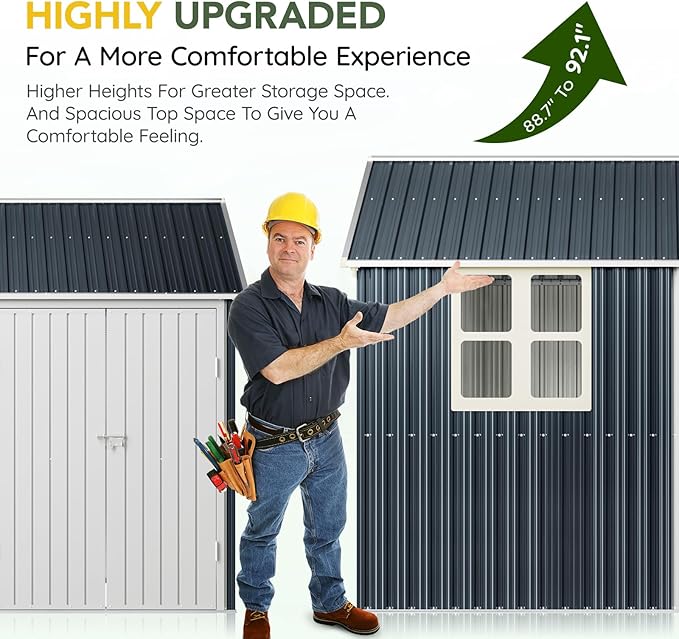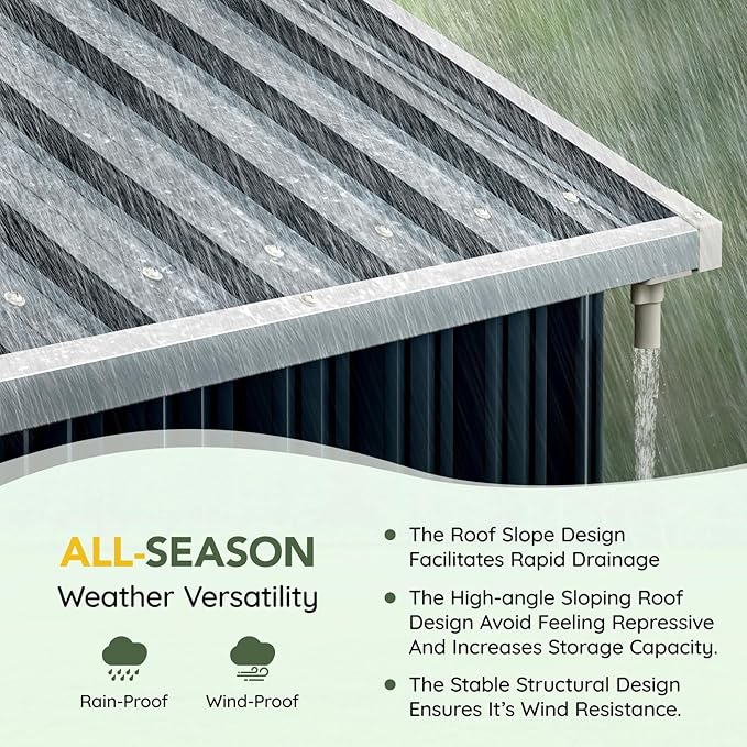 - Durable Construction: Crafted from galvanized steel, this shed is rust-resistant and weatherproof, ensuring long-lasting durability even in tough outdoor conditions.