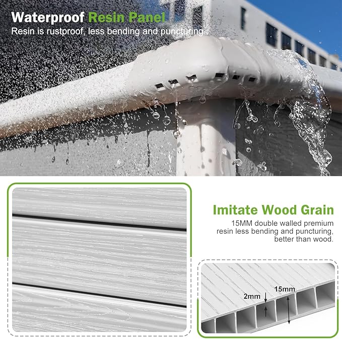 - 🛡️ BUILT LIKE A FORTRESS FOR ALL-WEATHER PROTECTION Rest easy knowing your gear is safe! Our shed features a reinforced 0.6mm galvanized steel frame and thick 14mm twin-wall polypropylene panels. It’s 100% waterproof, UV-proof, and rust-proof. Engineered to conquer the elements:❄️ Snow Load: Handles up to 20 PSF💨 Wind Speed: Resists winds over 80 MPH