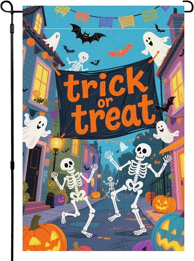 - Spooky Halloween Design – Our 12x18 inch garden flag features a vibrant double-sided print with Halloween-themed motifs (skull, pumpkin, bat) to add eerie charm to your outdoor space. Perfect for Halloween, fall, and seasonal celebrations