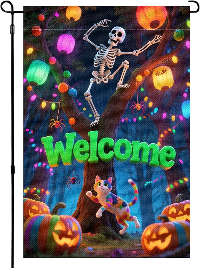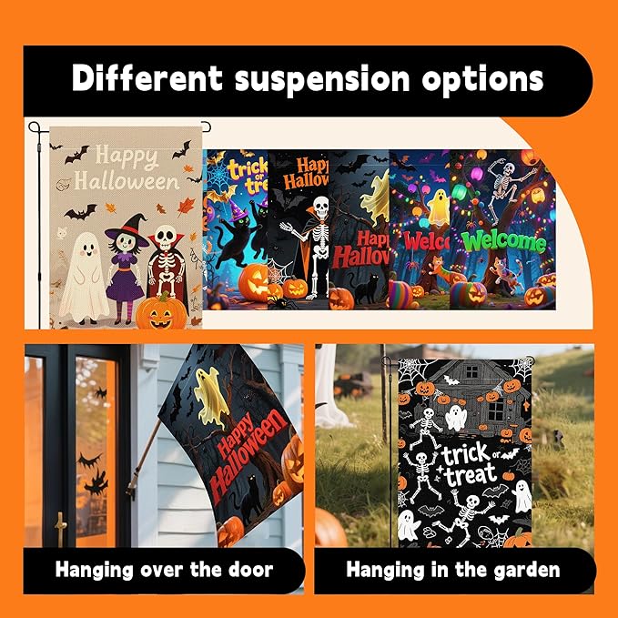 - Spooky Halloween Design – Our 12x18 inch garden flag features a vibrant double-sided print with Halloween-themed motifs (skull, pumpkin, bat) to add eerie charm to your outdoor space. Perfect for Halloween, fall, and seasonal celebrations