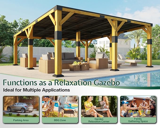 - Built for Extreme Weather Conditions: Constructed with a rust-resistant galvanized steel sloped roof and solid cedar wood frame, this wooden carport withstands winds up to 100 mph and supports 20,800 lbs—delivering year-round protection in all climates