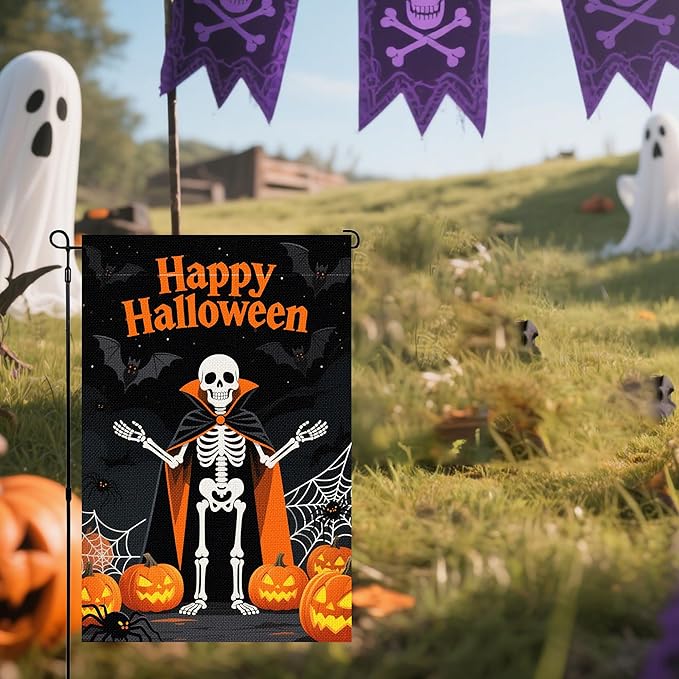 - Spooky Halloween Design – Our 12x18 inch garden flag features a vibrant double-sided print with Halloween-themed motifs (skull, pumpkin, bat) to add eerie charm to your outdoor space. Perfect for Halloween, fall, and seasonal celebrations