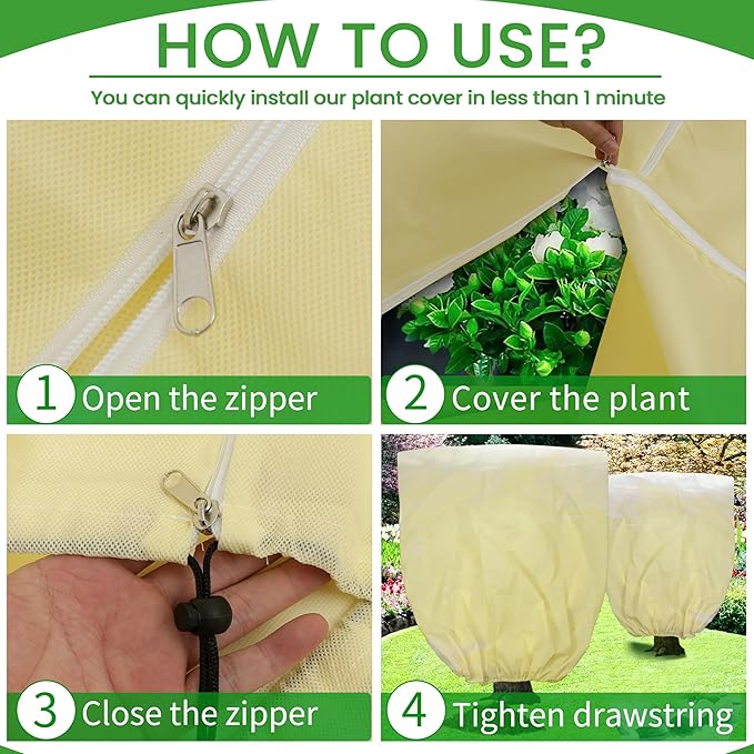 - 【Long Zipper】zipper on the tree blanket jacket are extended for easy put on and take off, without harming plants; Also our plant covers for winter is very convenient to observe plant growth with long zippers design.