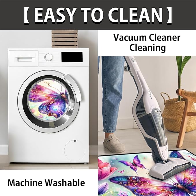 - EASY CARE: Floor mat is easy to clean, just vacuum with a hand-held vacuum cleaner, sweep with a broom, or shake it off outdoors or above a trash can. If you need more in-depth cleaning, it can be machine washed, or you can use a damp cloth dipped in a small amount of mild soap to wipe clean.