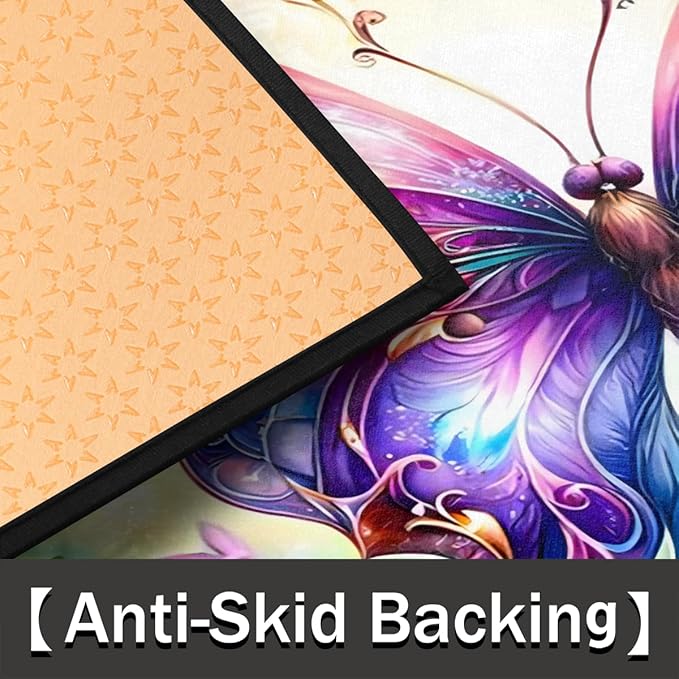 cfpolar Non-Slip Soft Half Round Door Mat, Butterfly Flower Semicircle Mat for Indoor Entrance Garage Bath Living Room Patio 24 x 36 in