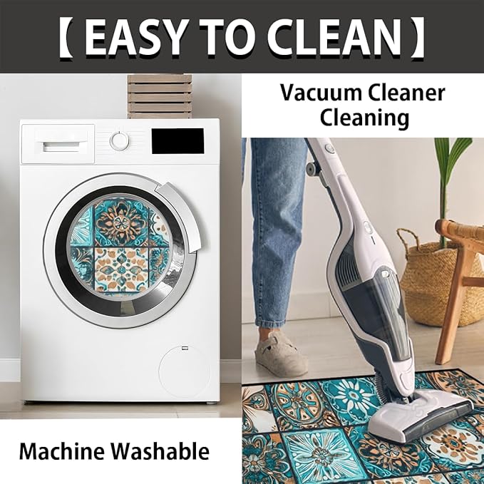- EASY CARE: Floor mat is easy to clean, just vacuum with a hand-held vacuum cleaner, sweep with a broom, or shake it off outdoors or above a trash can. If you need more in-depth cleaning, it can be machine washed, or you can use a damp cloth dipped in a small amount of mild soap to wipe clean.