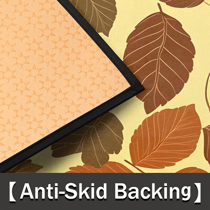 cfpolar Fall Non-Slip Soft Half Round Door Mat, Maple Leaves Autumn Semicircle Mat for Indoor Entrance Garage Bath Living Room Patio 24 x 36 in