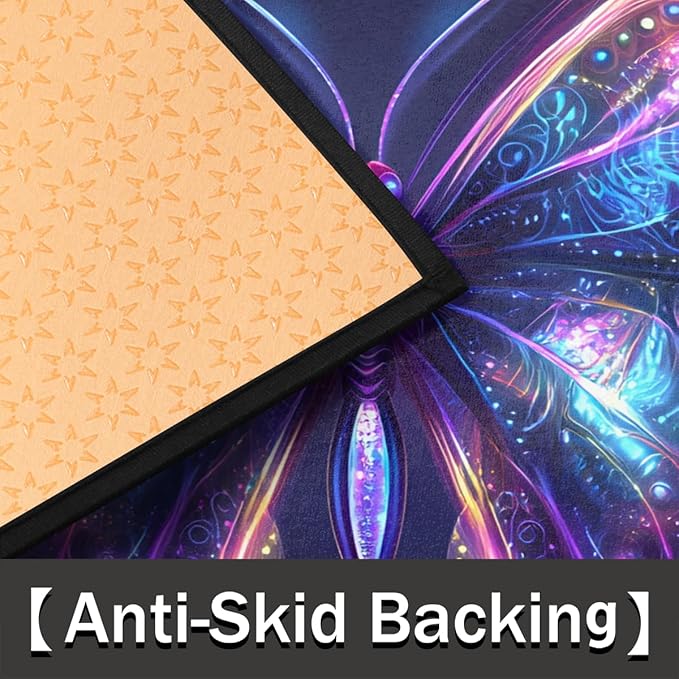 cfpolar Non-Slip Soft Half Round Door Mat, Glowing Purple Butterfly Semicircle Mat for Indoor Entrance Garage Bath Living Room Patio 24 x 36 in