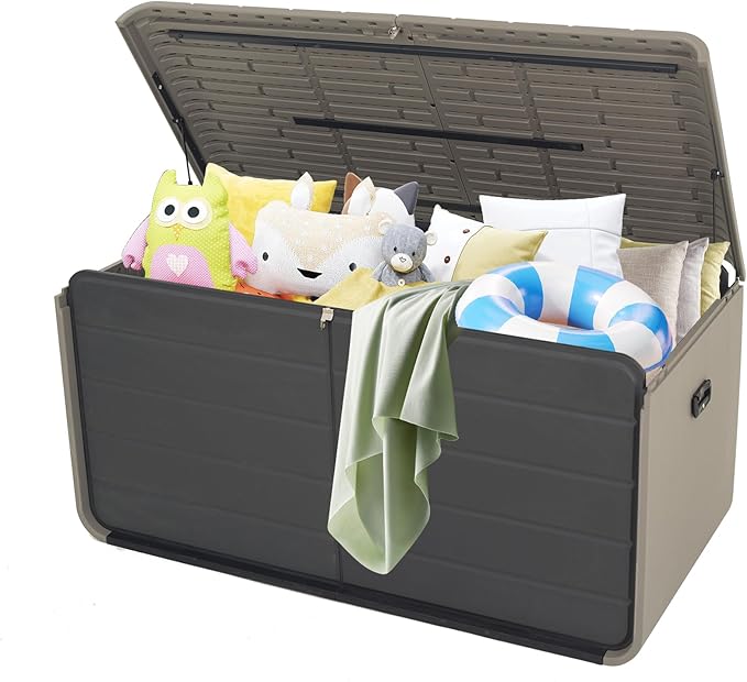 - 【Portable & Secure】The patio deck box comes with a handle on each side, so it’s effortlessly to move around even by yourself. If you need to go out, you can lock the storage chest for guaranteed security (Lock sold separately)