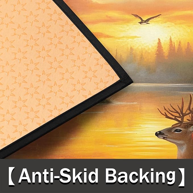 cfpolar Fall Non-Slip Soft Half Round Door Mat, Autumn Deer Maple Forest Semicircle Mat for Indoor Entrance Garage Bath Living Room Patio 24 x 36 in
