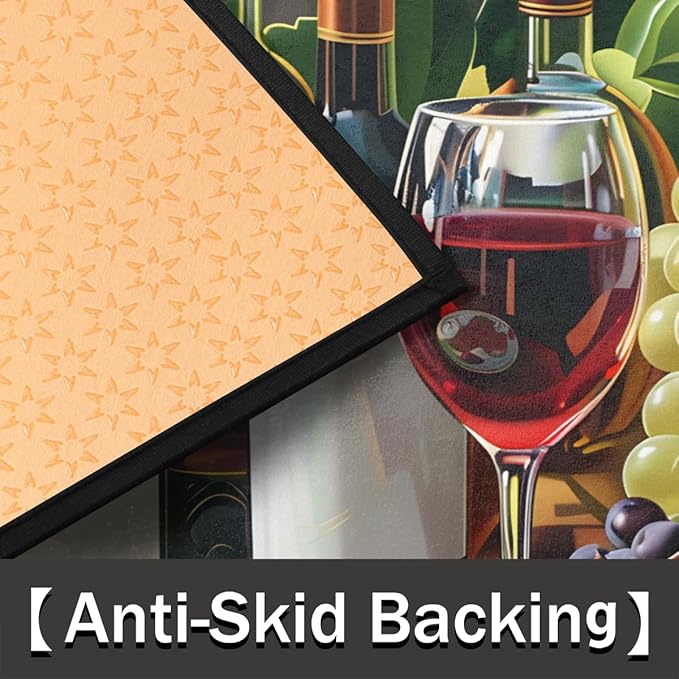cfpolar Non-Slip Soft Half Round Door Mat, Wine Cheese Grapes Semicircle Mat for Indoor Entrance Garage Bath Living Room Patio 24 x 36 in