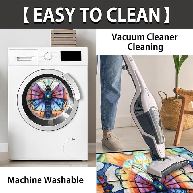- EASY CARE: Floor mat is easy to clean, just vacuum with a hand-held vacuum cleaner, sweep with a broom, or shake it off outdoors or above a trash can. If you need more in-depth cleaning, it can be machine washed, or you can use a damp cloth dipped in a small amount of mild soap to wipe clean.