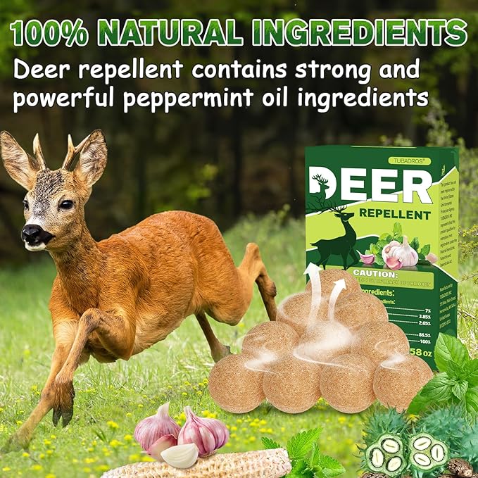 - Peppermint Deer Repellent: Deer repellent contains strong and powerful peppermint oil ingredients. The nice odor can last about 30-60 days and is effective and naturally repel deer and rabbits invading your garden.
