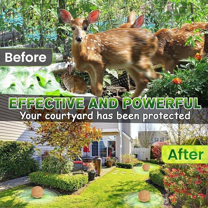 - Easy to use and no mess: Only need to take the deer repellent out of the package, place or hang on deer repellent wherever you need to repel deer, rabbits. According to the space, you can adjust the amount of the deer repellent.