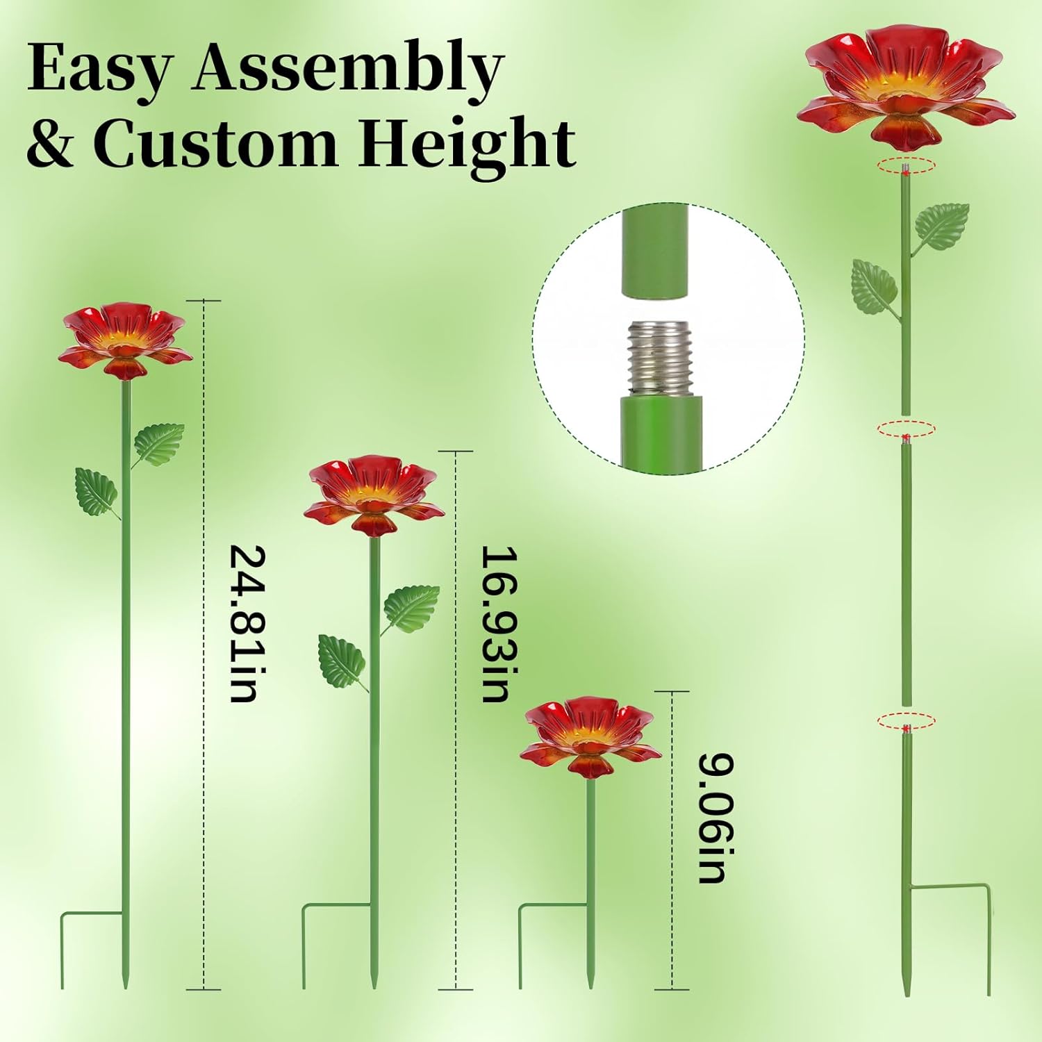 - Beautiful garden decor: The metal garden butterfly feeders for outdoors can easily cope with various weather conditions and is suitable for all-season use. After assembly, insert the base into the garden soil and place it in the garden area where bees often appear. Adjust the height of each watering station to create a charming and layered garden landscape.