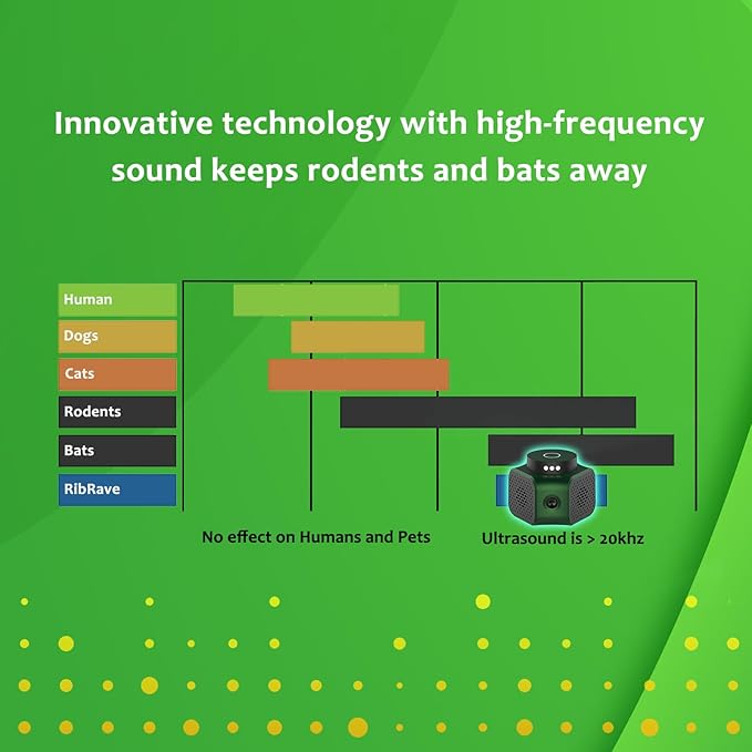 Mice Rat Repellent for House Rodent Squirrel Repellent Ultrasonic Mouse Deterrent Device Bat Removal Attic Garage Basement Crawlspace Indoors(Green)