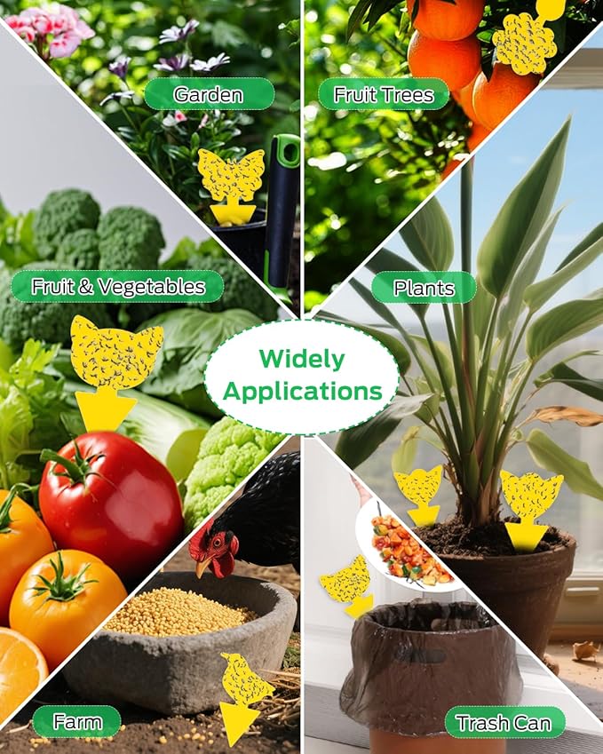 - [Widely Used] Safe and non-toxic fruit fly sticky traps for plants, effectively capturing fruit flies, fungus gnats, and other flying insects. Ideal for indoor use in homes, gardens, and around vegetables and fruits.