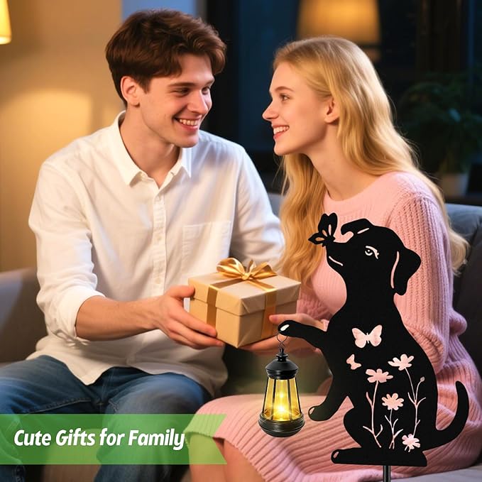 Solar Lights Outdoor Stakes, Metal Dog Solar Lights, Birthday Gifts for Women Mom Grandma, Waterproof Hanging Lantern Garden Silhouette Ornaments Decor Outside Backyard, Yard Art, Patio, Pathway