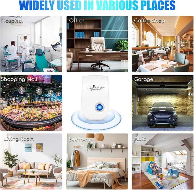 - ✔️【Easy Installation】Just plug the electronic control ultrasonic repellent in power sockets; it will start to repel the when the blue light on.No noise, no smell, and can emit ultrasonic waves that cannot be heard by humans or animals. Ultrasonic control can effectively drive out of the house without killing them, The electronic repeller will not affect your home life at all.