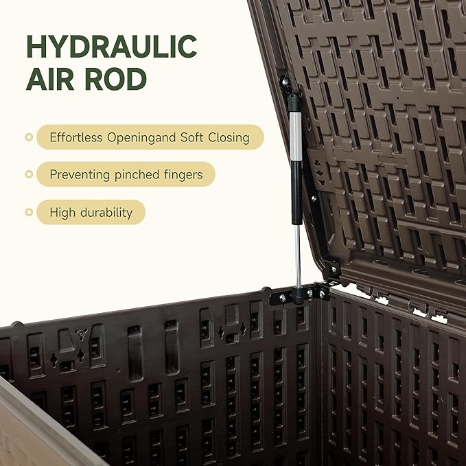 - SAFE HYDRAULIC LID: Equipped with an integrated gas strut, it allows effortless one-handed opening and a smooth, controlled closeāpreventing finger pinches and shielding contents from sudden impacts.ā