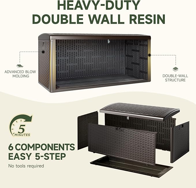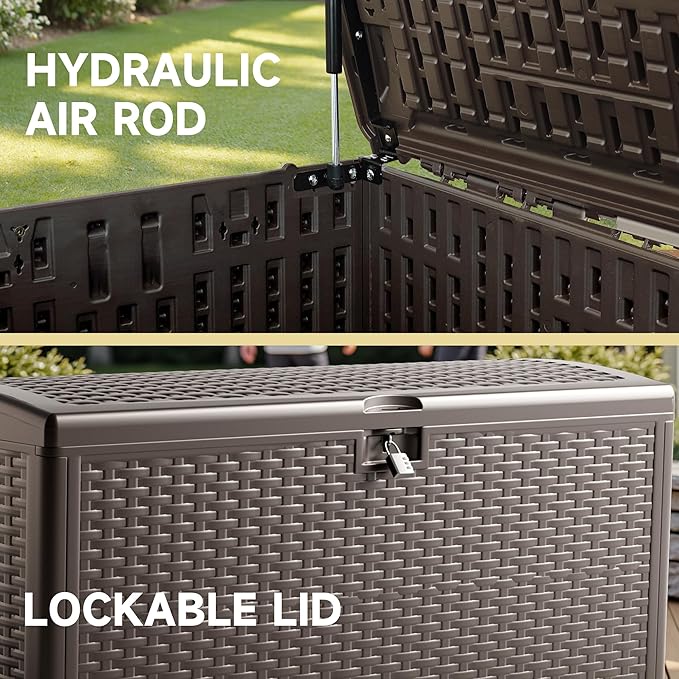 - VERSATILE STORAGE SOLUTION: Perfect for tidying up patios, pool areas, decks, and gardens. It securely stores outdoor cushions, gardening tools, seasonal items. The weatherproof design works great indoors and out.