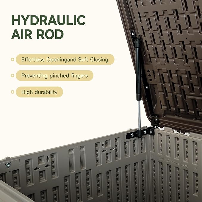 - SAFE HYDRAULIC LID: Equipped with an integrated gas strut, it allows effortless one-handed opening and a smooth, controlled closeāpreventing finger pinches and shielding contents from sudden impacts.ā