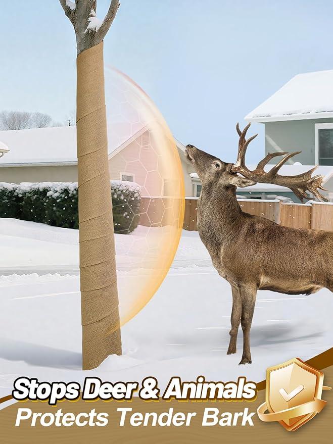 - Strong Winter Protection: The natural tree wrap will create a strong barrier for trees, shrubs, and flowers against frost, freezing winds, harsh sun, and sudden temperature changes. Also helps prevent deer, rabbits, and rodents from chewing bark, keeping your plants safe and warm.