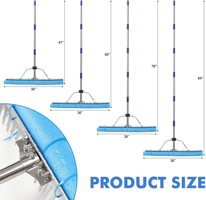 Landscape Rake, 94 Inch Adjustable Lightweight Pond Rake 36" Width Aluminum for Removing Weeds, Leaves, Beautifying Coastlines and Beaches